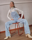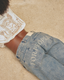 100% cotton jean featuring asymmetric cuts and faded details.Mid-high rise with a straight fit.